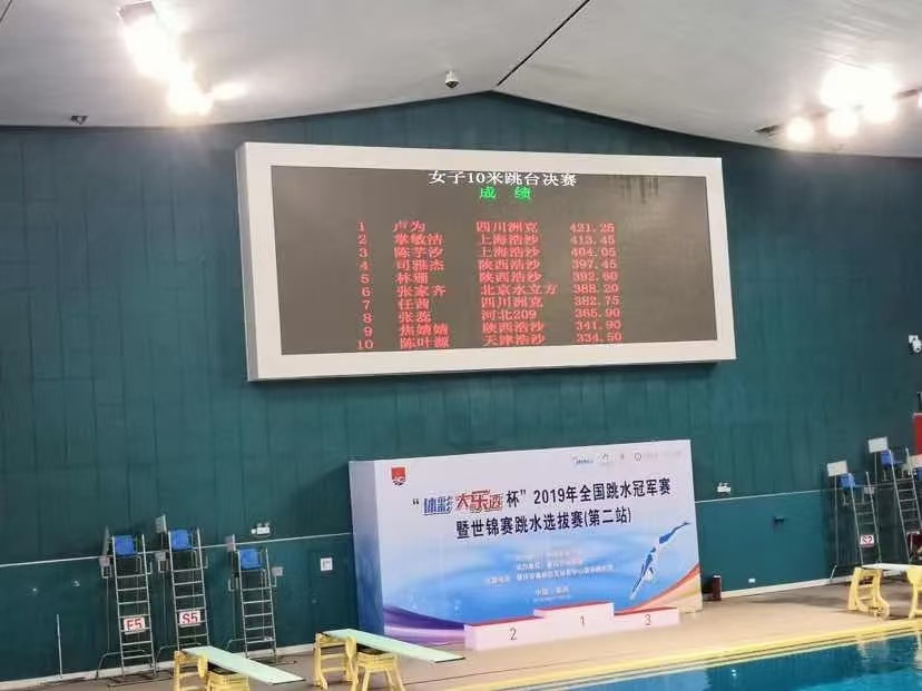 應(yīng)用于花樣游泳、跳水等水上運(yùn)動(dòng)的比賽和訓(xùn)練計(jì)時(shí)記分及成績(jī)處理。