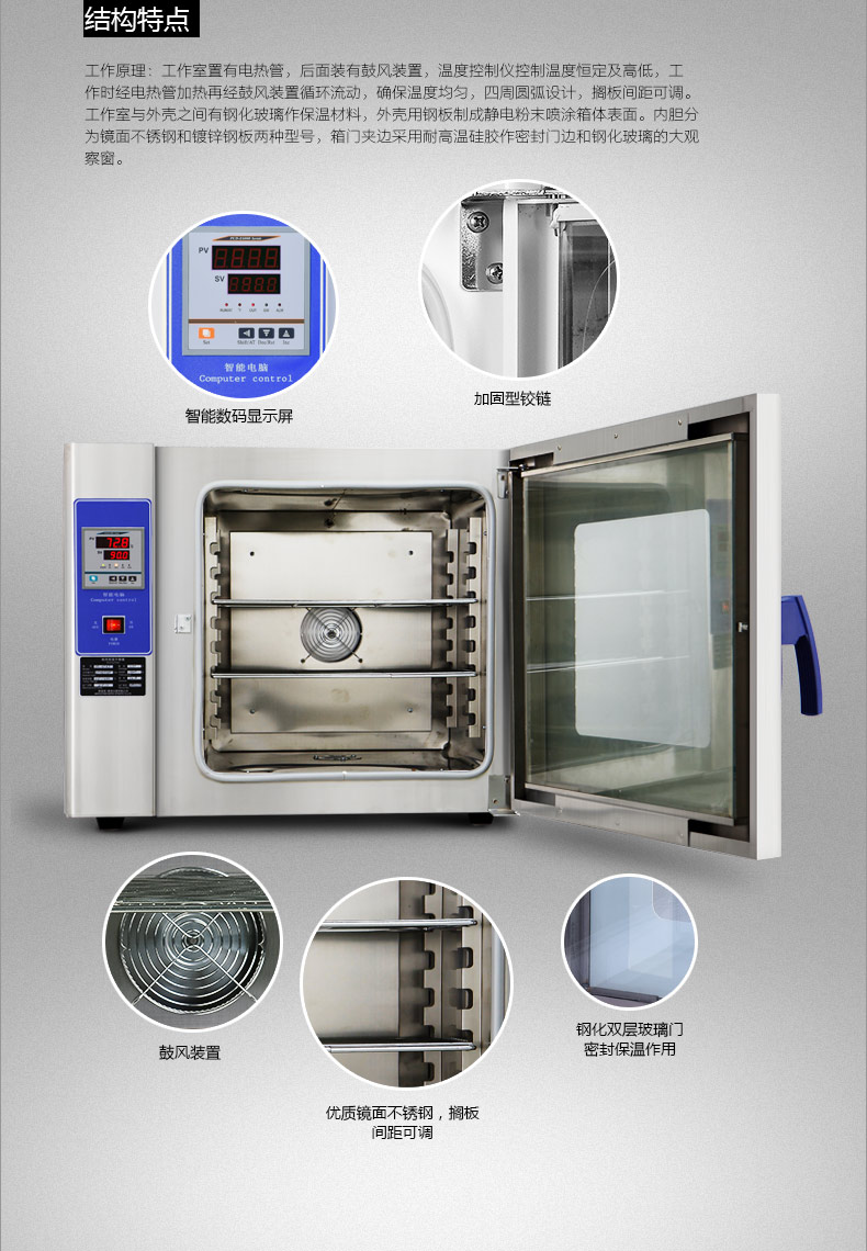 數(shù)顯帶定時智能烤箱、發(fā)熱管側(cè)面加熱、內(nèi)尺寸有350*350*350mm 450*450*350mm 550*550*450mm 750*600*500mm