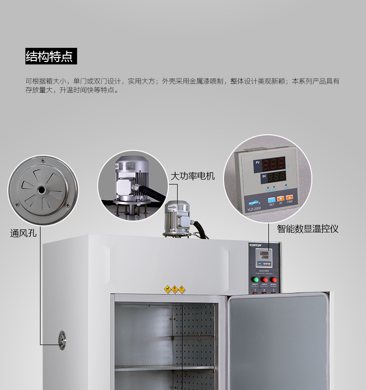 數(shù)顯工業(yè)式運(yùn)風(fēng)雙開(kāi)門(mén)干燥箱、內(nèi)膽有不銹鋼和鍍鋅材質(zhì)二種、外板為冷板噴漆。內(nèi)尺寸:H1200*W900*D800mm、外尺寸:H2000*W1450*D1000mm、功率10KW、380V、溫度常溫-250度可調(diào)、數(shù)顯智能溫控器、超溫超時(shí)自動(dòng)報(bào)警、帶定時(shí)功能!